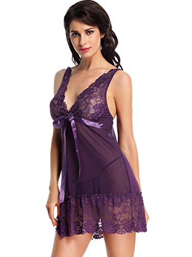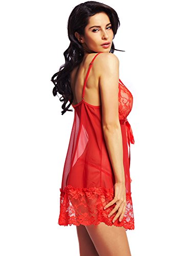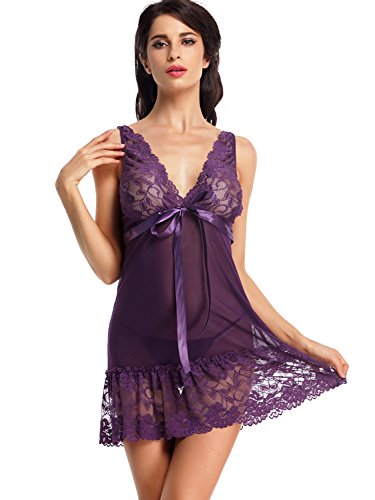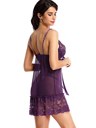 -. Title : Amoretu Damen Negligee Nachthemd Sleepshirt mit reizvoller Spitzenverzierung Nachtwäsche