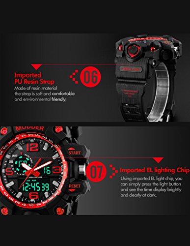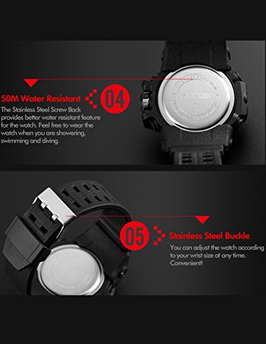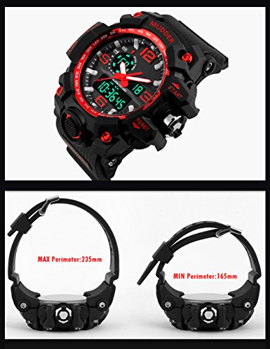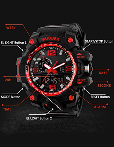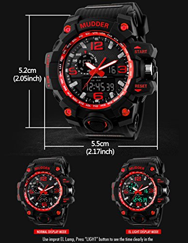 -. Binding : Watch -. Brand : Mudder -. Color : Red -. Department : Mens -. EAN : 0713072673989 -. Feature : Japan original digital movement / ABS plastic case with PU rubber strap / 50 m waterproof sport watch (please do not press any buttons under water and avoid using it in extreme hot or cold temperature) / A good present for your friends / Come with present box -. Label : Mudder -. Manufacturer : Mudder -. MPN : Mudder-Wrist Watch-01 -. PartNumber : Mudder-Wrist Watch-01 -. ProductGroup : Watch -. ProductTypeName : WATCH -. Publisher : Mudder -. Studio : Mudder -. Title : Mudder 5.5 cm/ 2.17 inch Big Dial Analog Digital Outdoor Sport Men Wrist Watch, Red -. UPC : 713072673989