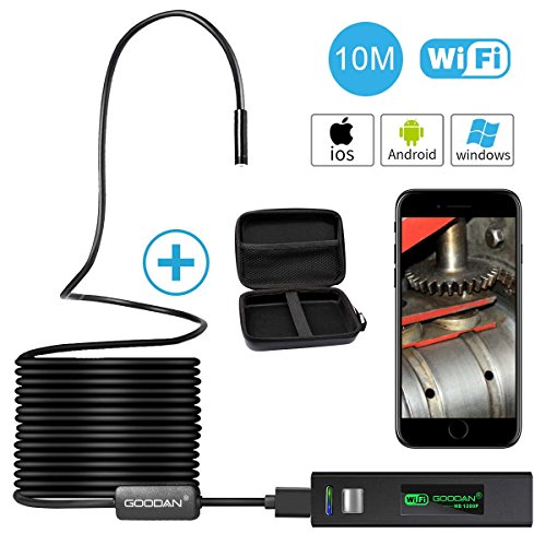 Wireless inspection camera, GOODAN Updated 1200P HD Wifi Endoscope borescope With 2.0 Megapixels 1200P HD Snake Camera For Iphone Android Smartphone, Table, Ipad, PC - (33.5FT) - Include carrying case