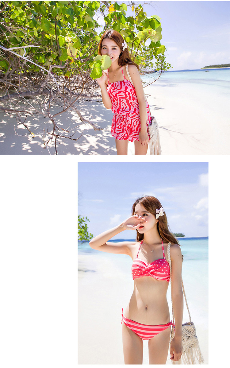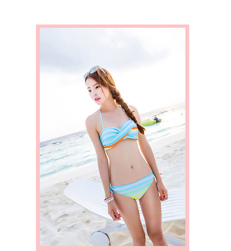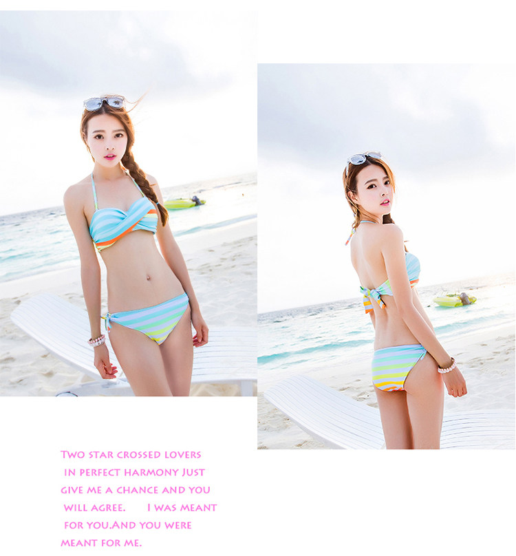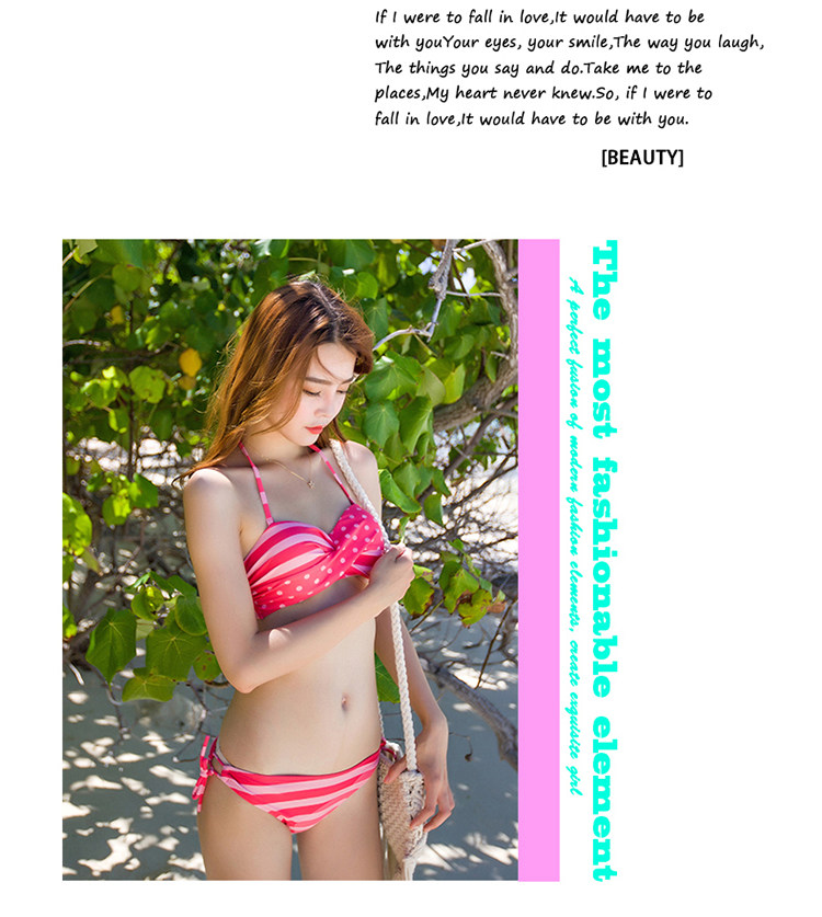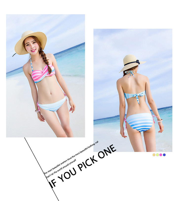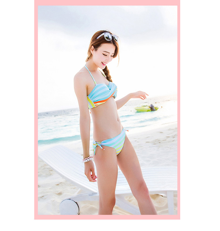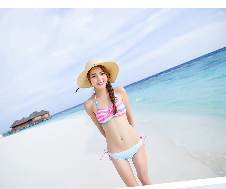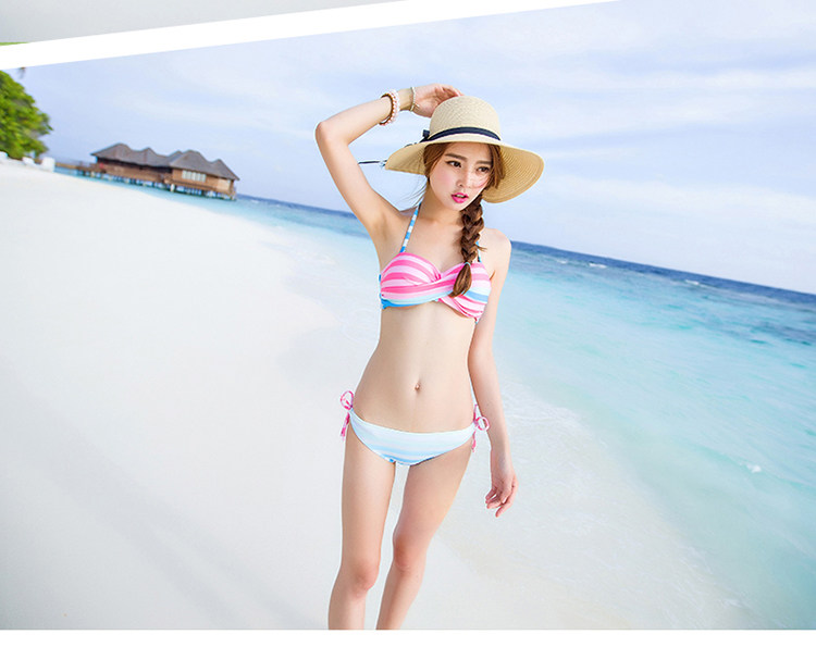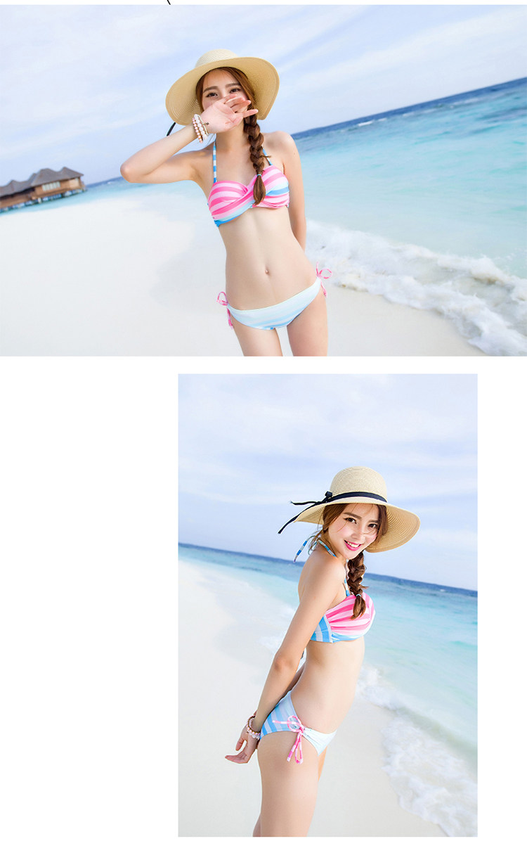 新款女泳衣大小胸钢托聚拢性感显瘦拧花系带款三角比基尼三件套