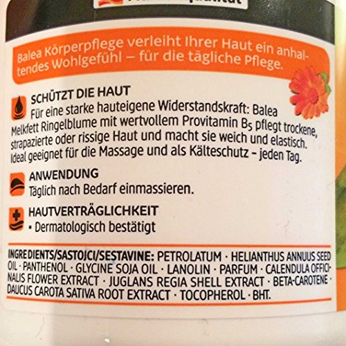 -. Feature : Balea Melkfett Ringelblume, schütz vor Witterungseinflüssen und Feuchtigkeitsverlust (250ml Dose)