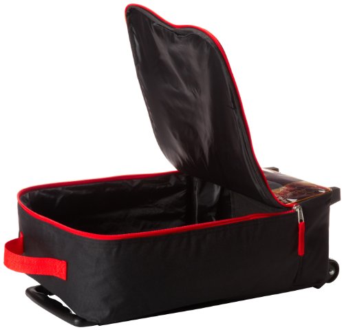 -. Feature : Lage style wheels; top handle; zipper closure / Made from durable material / Measures 16.25 x 11.75 x 6