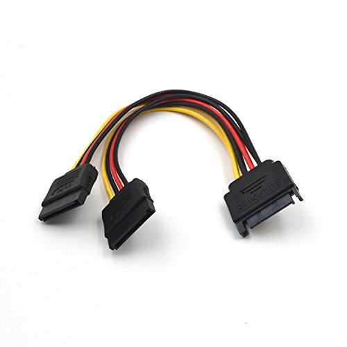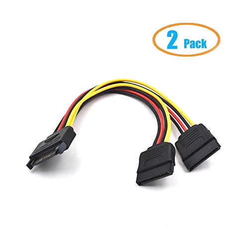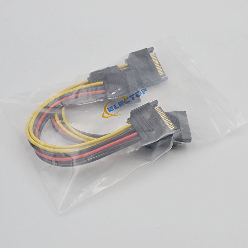 Electop 2 Pack SATA 15 Pin Male to 2 Female Extension Splitter Cable 20cm