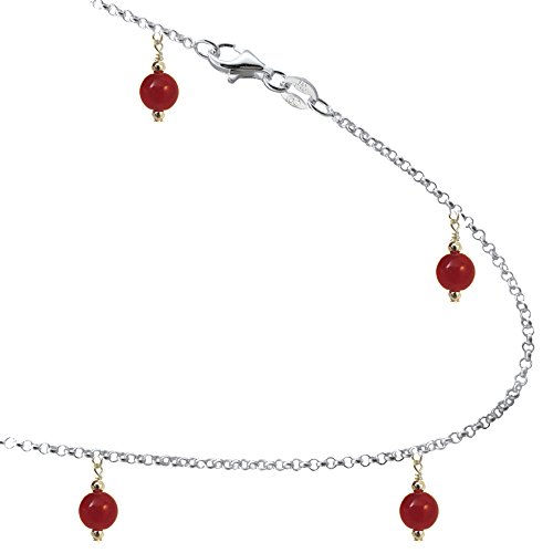 -. Feature : Metal- .925 Sterling Silver. Rolo style Link / Length- 7, 8, 9, 10, 11, 12, 13 Inches / Color- Red-agate colored / Anklet, Bracelet