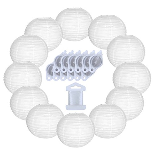 Just Artifacts 12inch Decorative Round Chinese Paper Lanterns 10pcs w/ 12pc LED Lights and Clear String (Color: White)