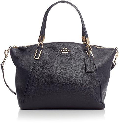 Gorgeous well-made small Pebbled Leather Kelsey collection by Coach. Color Midnight with polished gold-tone hardware. Style 34493. Dimensions approx 13.5" across top tapered down 10.5" at the bottom x 9" H x 3" D. COACH is an American leather goods company known for ladies' and men's handbags, as well as items such as luggage, briefcases, wallets and other accessories. COACH is one of the most well-known brands in the world. Both men and women recognize the COACH logo and millions continue to support COACH bags season after season. Established in 1941 as a family run workshop in Manhattan, COACH quickly became renowned not only for their style but also quality.