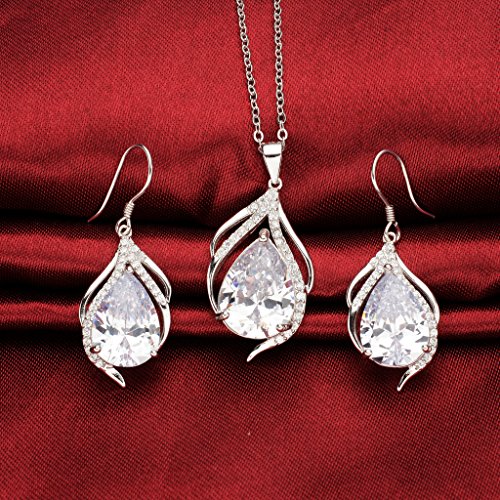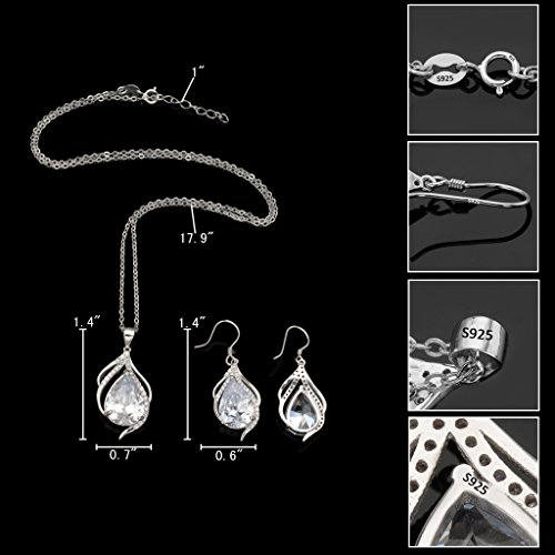 -. Feature : SGS Certified item, EleQueen Original Patented Design, the Highest Quality Standards in Jewelry; Environmental friendly high polished finish Rhodium Plated Genuine 925 Sterling Silver with Cubic Zirconias, this jewelry shines with beauty and adds a luxurious look. / CZ Color: Clear; Necklace Length: 17.9-18.9in, Pendant Size: 0.7in by 1.4in, Earrings' size: 0.6in by 1.4in; Total Weight: 13g / A perfect accessory to your outfit or as an approP.R.Iate gift, e.g.for your Lover, girlfriend, fiancee, wife, mother, couple, Valentine or just a friend,etc; Suitable for ball, party, anniversary, graduation, birthday or any special occasions; Click on our Storefront for more stylish jewelries. / The item in picture with ornament is same as the real object without PS. / Free gift wrap with a pouch or box for an impressive gift presentation, including a silver polishing cloth; 30-day Money Back Guarantee.