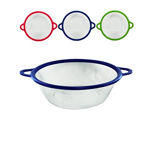 - Drain pasta, sift flour and clean fruits and vegetables with this Round Metal Mesh Strainer featuring a round shape with a colored plastic edge in either green, pink or blue