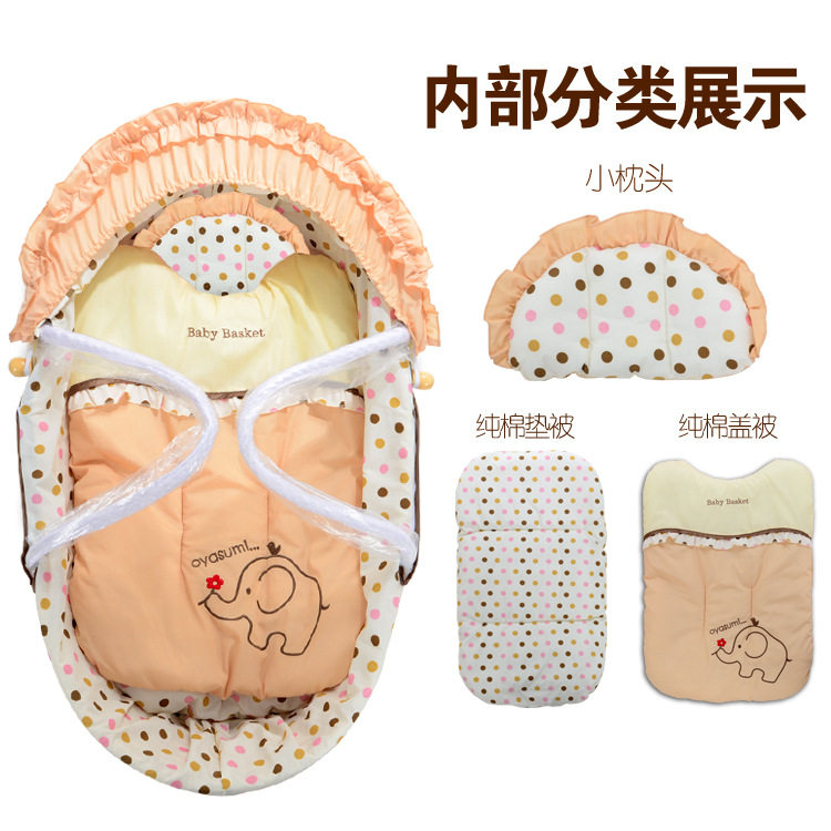 Standard: corn crust basket + small quilt + small mattress + baby pillow + cradle skirt + awning