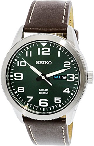 -. Title : Seiko Solar Mens Leather Watch SNE473P1