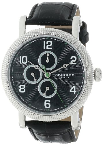-. Title : Akribos XXIV Men's AK599SS Ultimate Quartz Multifunction Black Dial Silver-tone Stainless Steel Black Leather Strap Watch