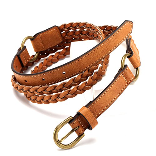 -. Binding : Apparel -. Brand : MoYoTo -. Department : womens -. Feature : Fashion Designer waist belt for dresses and jeans. / Bronze Buckle ,adjustable according to your waist size . / Suitable for: Lady; Occasion: Casual wear for jeans and dresses.etc. / Belt Size:Width/2cm(0.79inch); Full Length/100cm(39.37inch). / Net Weight: 75g; Package Content: 1 x Waist Belt -. ProductGroup : Apparel -. ProductTypeName : ACCESSORY -. Size : One Size -. Title : MoYoTo Women's Adjustable Stylish Brown Thin Braided Leather Belt For Jeans