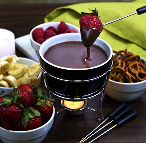 HOME ESSENTIALS HOME ESSENTIALS & BEYOND 75307 BLACK & WHITE CHOCOLATE FONDUE SET IN COLOR BOX 5 D IN.