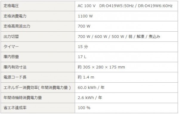 用途に合わせて設定できる出力切替搭載。新生活やお年寄りにも最適の17Lサイズです。文字を大きく線を細くしたことにより視認性を向上し、より使いやすくました。大型ダイヤルで、よく使う5分以下が設定しやすい15分タイマーあり。省エネ達成率100%です。 |