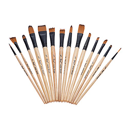 -. Feature : 14pcs/pack, including brush size: 5/0#, 1/4#, 3/8#, 1/2#, 3/4#, 10#, 8#, 6#, 4#, 2#, 0#. / Brush Shape: Flat, Flibert, Round, Swatooth, Angular, Dagger Stripper, Liner Detail, Fan. / A complete brush set to satisfy different shapes and lines, ideal for oil, acrylic and watercolor painting. / Soft and flexible nylon hair offer super smooth drawing experience. / Comes with a handy canvas carrying bag to protect your brush, standable design for convenient usage.