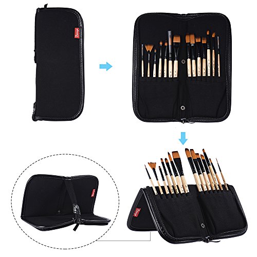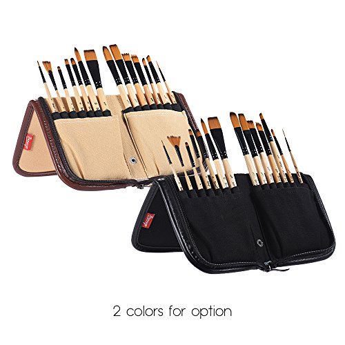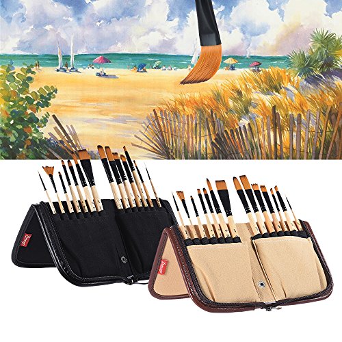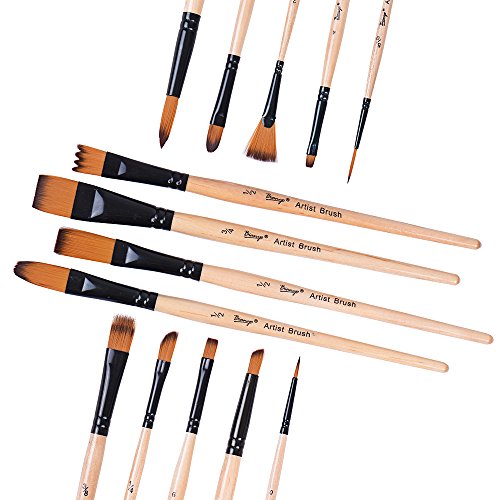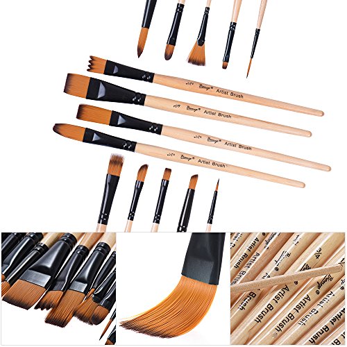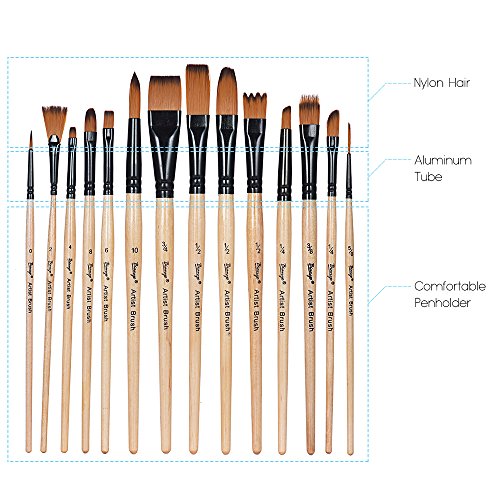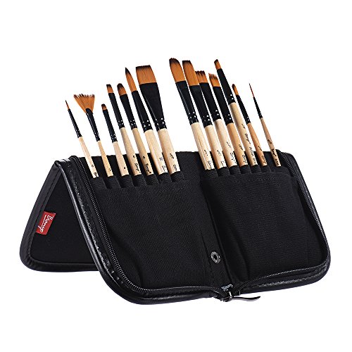 -. Title : Aibecy 14pcs/pack Nylon Hair Brush for Oil Acrylic Watercolor Painting w/ Handy Canvas Carrying Case Art Gift