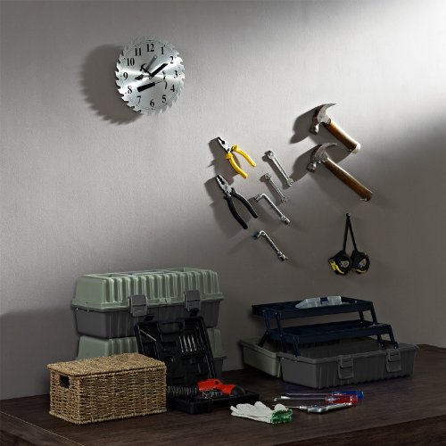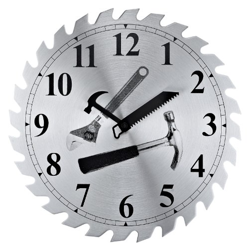 - Feature : Made from 10" saw blade replica / Quartz analog / Uses aa battery (sold separately)
