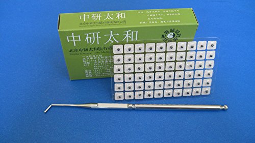 Studio : Beijing Publisher : Beijing Binding : Health and Beauty Product Description Wang Bu Liu Xing Zi, Acupuncture Vaccaria Ear Seeds 600 pcs / pack with Professional Stainless Steel Ear Curved Probe, long 6 inches, weight 0.6 ounce.The curved probe can accurately find ear and body point for treatment. It is easy and useful than straight probe. You can use the curved probe for two purposes - use the small head to ear point and use the big head to the body point for treatment.Includes Huge English acupuncture ear charts. Chart size 25" x 18". 0