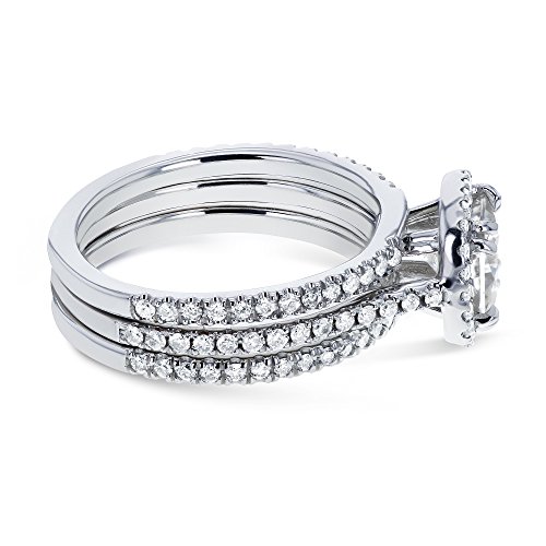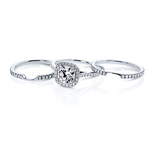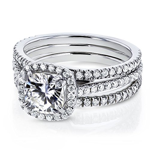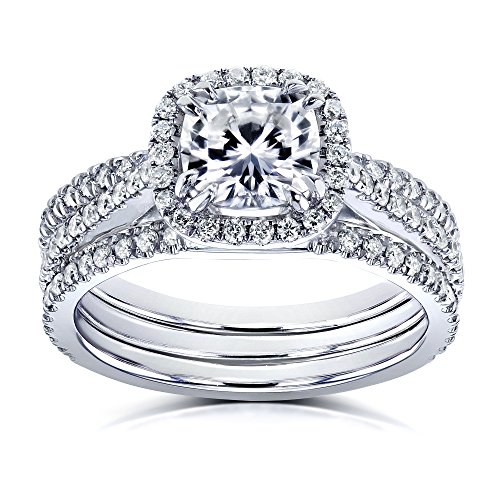 -. Binding : Jewelry -. Brand : Kobelli -. Department : womens -. Feature : Forever One Cushion Moissanite and Diamond Triple Ring Bridal Set / Double Wedding Bands with a Halo Engagement Ring / 100% Authentic Fine Jewelry / Designed, made, and distributed by Kobelli in Los Angeles, California / Complimentary gift box included -. Label : KOBELLI -. Manufacturer : KOBELLI -. ProductGroup : Jewelry -. ProductTypeName : FASHIONRING -. Publisher : KOBELLI -. Studio : KOBELLI -. Title : Cushion Forever One Colorless (D-E-F) Moissanite and Diamond 1-3/5ct TGW Halo Bridal 3-Piece Set in 14k White Gold
