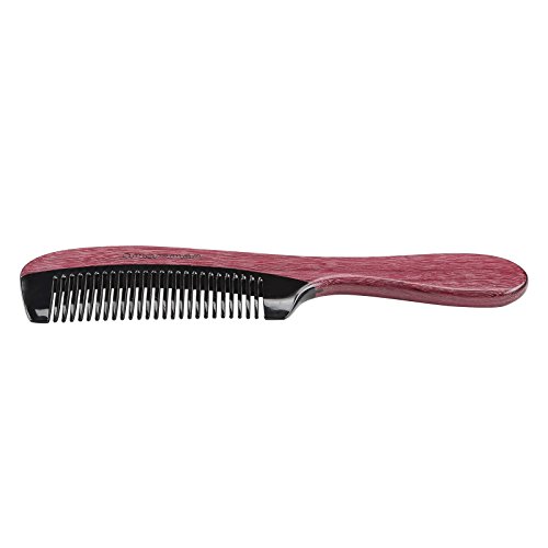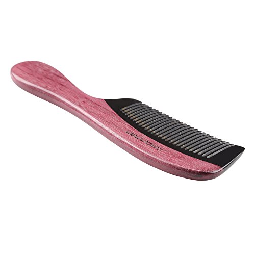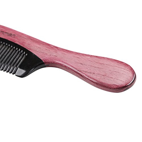 Amammon Black Ox Horn Comb - Anti Static Natural Detangling Hair Comb - Handmade Premium Quality Natural Round Handle Purple Heart Wood - Exquisite Gift