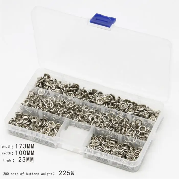 100/200 Pcs Clothes Metal Snap Buttons Copper Fasteners Press Studs Cloth Buckle Snaps With Box