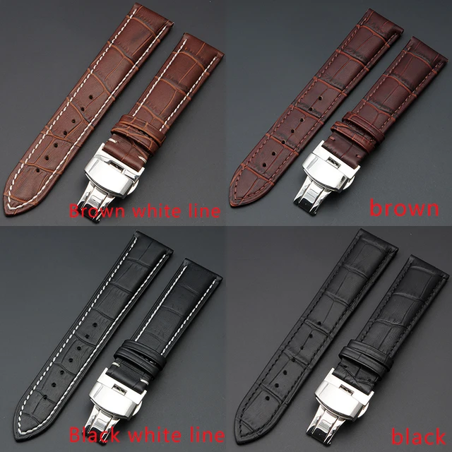 | [해외] 도매 10 개/몫 고품질 정품 송아지 가죽 시계 스트랩 밴드 남성 여성 시계 팔찌 액세서리 12 24 미리메터 |