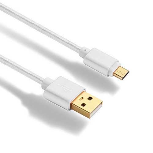 Hankuke [2 pack] 3.3ft/1m Nylon Braided Micro USB Cable with Gold Plated Connectors for Android, Samsung, HTC, Nokia, Sony Charging and Data Sync Transfer (white )