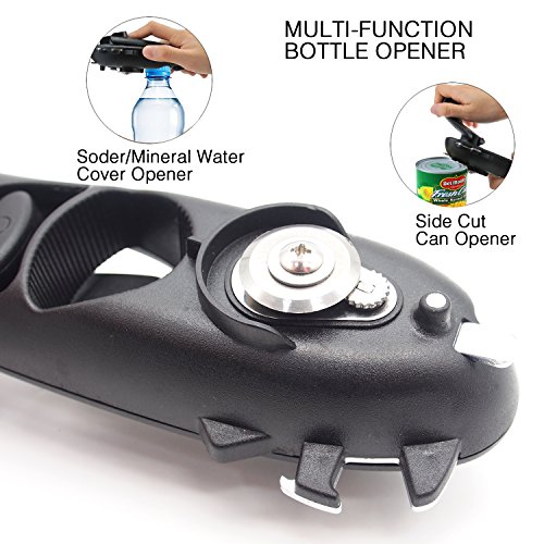 Can Opener Manual Multi-function Bottle Opener Smooth Edge Side Cut Opener Safety Bottle Opener Durable Cutting Tool Sharp Cutting Wheel Easy Turn Knob Anti-Slip Handle fits for Kitchen Restaurant