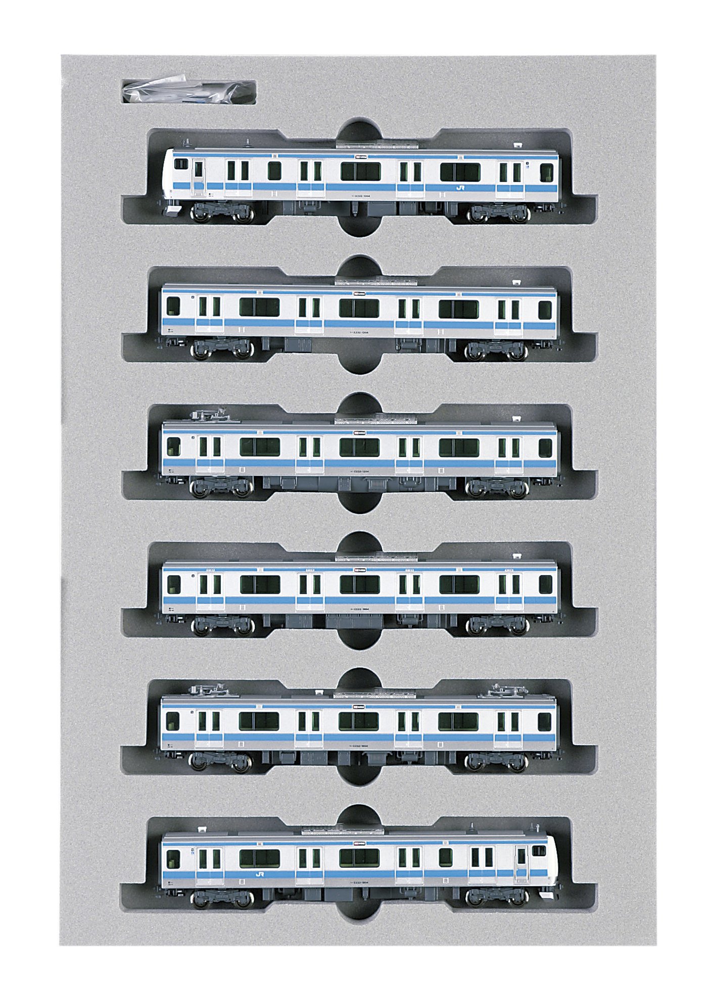 The E233 series 1000 series of the Keihin Tohoku line specification such as the side door with no roundness on the corner and the divided bead on the roof, the side side glass of the green, equipment under the floor etc. are accurately reproduced to the details of the body, which is the feature of the E233 series.