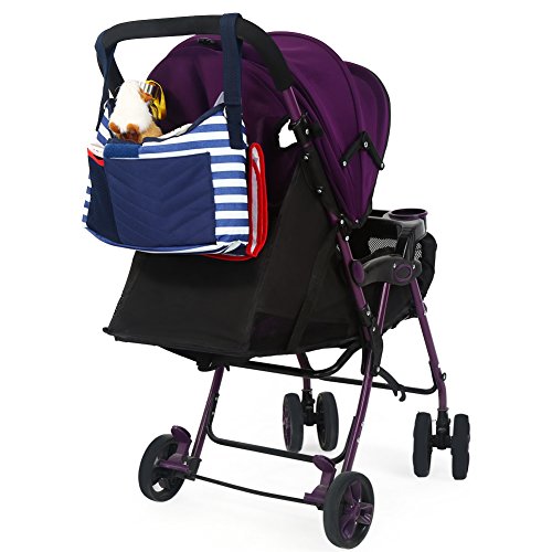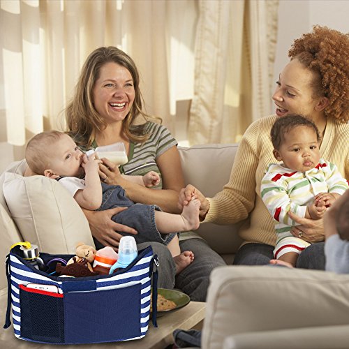 Key Features: 1. Strong and convenient to use Velcro closure tabs and straps. 2. Our all in one stroller organizer is designed to let you easily convert your stroller organizer into a messenger bag. When using it as a stroller organizer, just simply attach the stroller straps on each side of the organizer to your stroller. When using it as a messenger bag, just attach it to the detachable shoulder strap. 3. The organizer keeps your belongings well organized and easy to access. It includes a large compartment that is perfect for snacks, diapers, toys, baby clothes and other baby items, 2 beverage holders, 2 exterior pockets for small items such as cell phones or keys and a detachable diaper changing pad. 4. The exterior zipper pocket features a key holder for easily attaching your keys. 5. Durable and waterproof material which allows easy to wipe clean. 0
