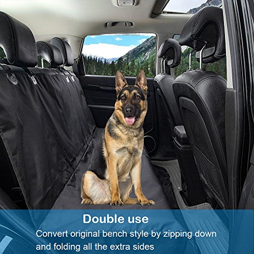 -. Feature : 【Hammock convertible Design】: 54inch X 58inch waterproof dog seat cover fits standard cars trucks and SUVs' backseats. It can be converted between hammock or original bench style with the zippers, you can choose any style you want. / 【Two pockets for storage】: Two pockets convenient store your personal supplies and pet supplies. Such as tissue, water bottle or other pet item, and the items will not fall out. / 【Waterproof & Non-Slip Durable】 : Made of heavy-duty and durable oxford 600D waterproof polyester fabric, waterproof, wear-resistant, tear-resistant. Also built-in nonslip backing and seat anchors to prevent seat cover from sliding around. Provide you a comfortable and safe driving. / 【Easy to Install and Clean】: Our dog car seat cover very easy to install with quick release clips. Just snap the buckle straps around your car's headrests and insert the seat anchors. Just use the wet cloth or machine washable and vacuum. / 【Multi Application】: CATOOP dog car covers is fit not only for dogs, cats, small animals and other pets, but also for kids. Let your pets enjoy the feel comfortable and free. Lifetime Warranty and Product Support.