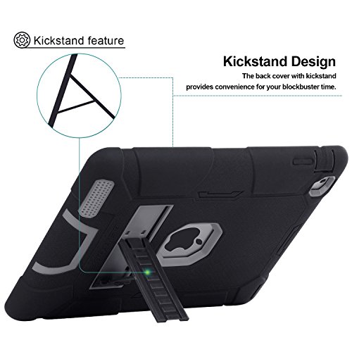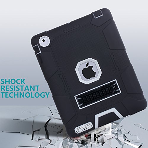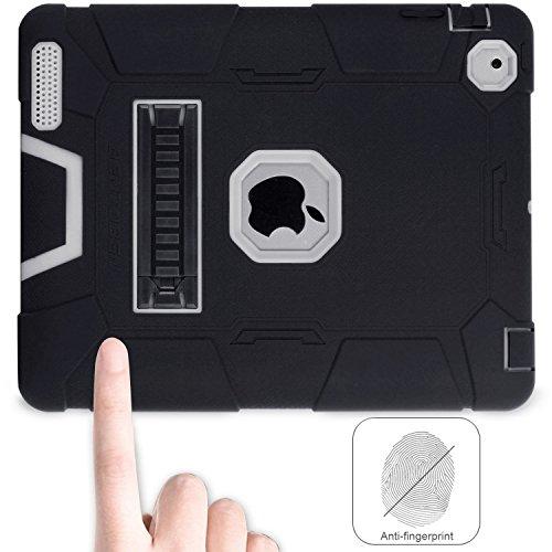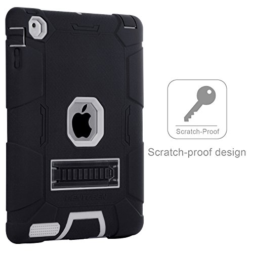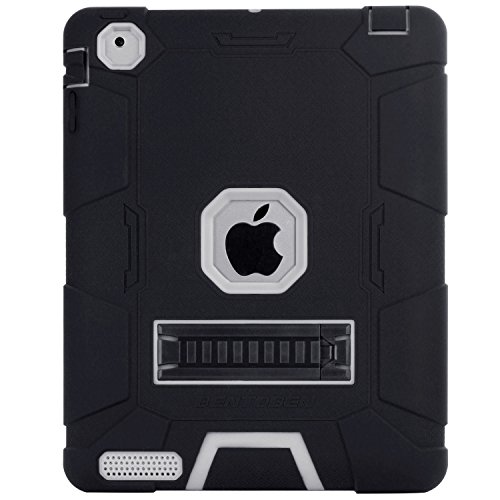 iPad 4 Case, iPad 2 Case, iPad 3 Case, BENTOBEN Kickstand Full-body 3 IN 1 Soft&Hard Protective Heavy Duty Rugged Shockproof Drop Resistance Anti-slip Cover for Apple iPad 2/3/4 Retina,Black/Gray