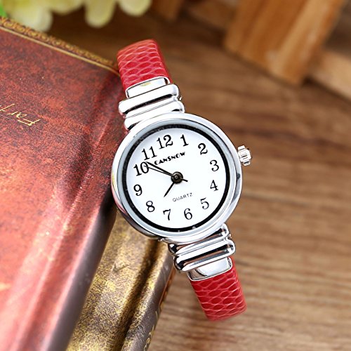 -. Binding : Watch -. Brand : Top Plaza -. Department : Womens -. Feature : Watch band length:5.5"; please note the length. It is good for kids and women with small wrist. / Case: zinc alloy;strap:zinc alloy wrapped by PU leather. face material: mineral glass. / Elegant bracelet bangle cuff watch for women with small wrist, girls. Leisure watch. Kids' watch. / Not waterproof; Watch comes with a velvet bag; no box. / We use Pos Malaysia to ship items with battery for cus reason, which mostly takes about 15-25 business days to arrive; USPS/DHL(over $100) without battery,7-15/ 3-5 working days to for the delivery. -. Label : Top Plaza -. Manufacturer : Top Plaza -. Model : JSDUK60099 -. MPN : JSDUK60099 -. PackageQuantity : 1 -. PartNumber : JSDUK60099 -. ProductGroup : Watch -. ProductTypeName : WATCH -. Publisher : Top Plaza -. Studio : Top Plaza -. Title : Top Plaza Kid's Girls Watch Women Chic Simple Bracelet Cuff Watch Gift, Red