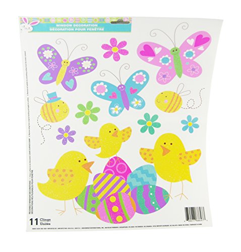 (Spring Fling)/Arts Crafts/Stamps Stickers/DIRECT FROM USA/Easter Decorative Glitter Window Clings - Butterflies Chicks Flowers Easter Eggs Theme- 9 Clings