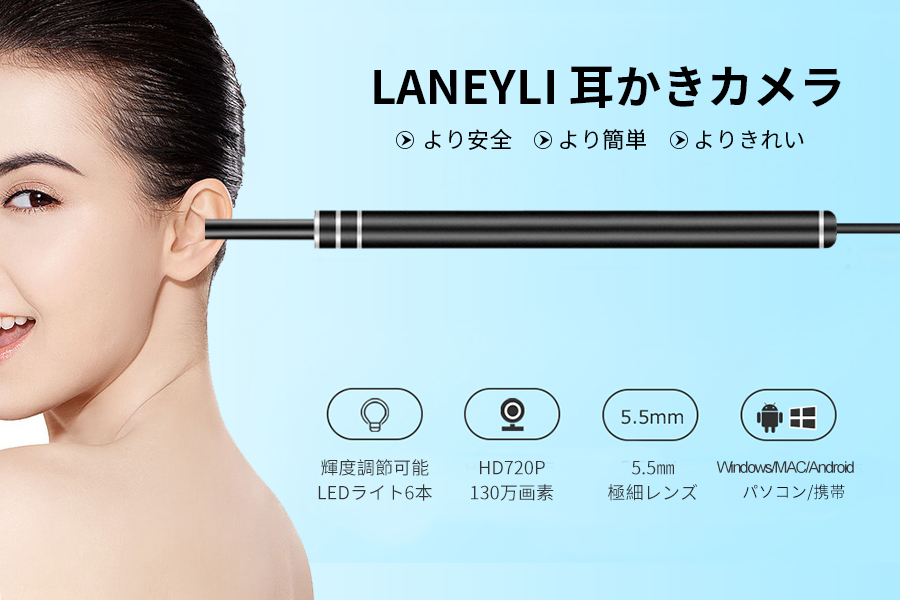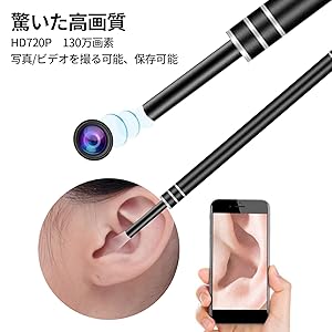 HD720P 130万画素で、直系5.5㎜のカメラを通して、はっきり見ながら耳掻きます。