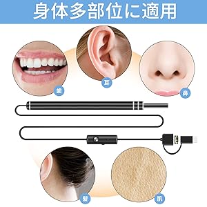 ご注意:カメラの最適焦点距離は1.4㎝~2㎝です。本製品をきちんと取り扱ってください。鼓膜に触れてはいけません。