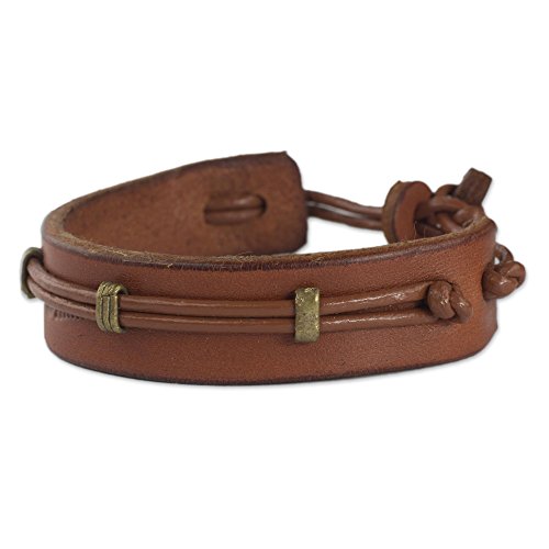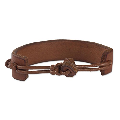 NOVICA Men's Leather Wristband Bracelet 8.5" L, 'Stand Alone in Tan'