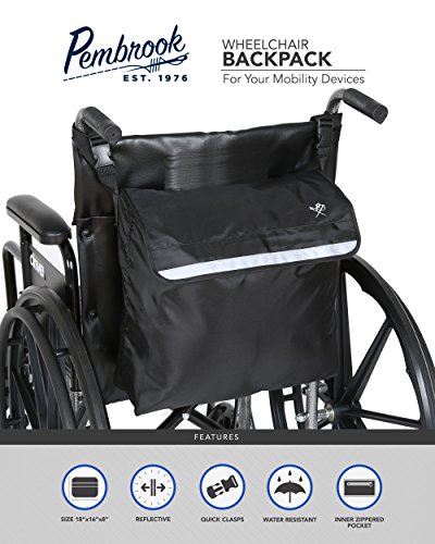 Pembrook Wheelchair Backpack Bag - Black - Great accessory pack for your mobility devices. Fits most Scooters, Walkers, Rollators - Manual, Powered or Electric Wheelchairs