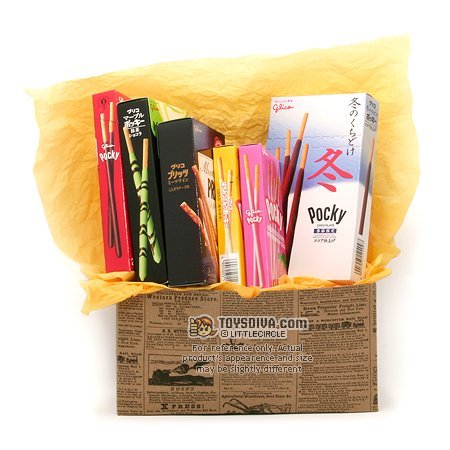 -. Feature : A gift boxset for the fans of Japanese most popular snack foods: Pocky and Pretz. / Each boxset contains 6 packs of Pocky and/or Pretz in various favors. / NOTE: The picture of this listing shows a sample boxset only. The actual favors included in the boxset may be different, but there will always be 6 packs of Pocky and/or Pretz. / The package shown in the picture is a sample only. The actual style of the box may be different.
