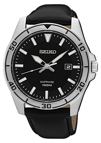 -. Title : Seiko Black Dial Mens Leather Watch SGEH65