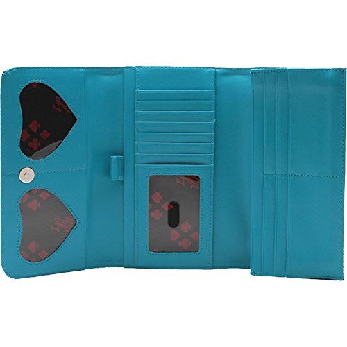 Studio : Lux De Ville Publisher : Lux De Ville Binding : Apparel Product Description Miss Lux Wallet Villain Blue Sparkle By Lux De Ville. This Lux de Ville signature wallet will compliment any of your handbags. Functional yet fabulous!! Hooray! Inside you will find two heart shaped picture frames, two bill compartments, a pen holder, and plenty of card and ID holders. The wallet is tri fold with magnetic clasp. Dimensions: 7.5" long, 4.5" high closed, 12" high open, 1" wide. 0