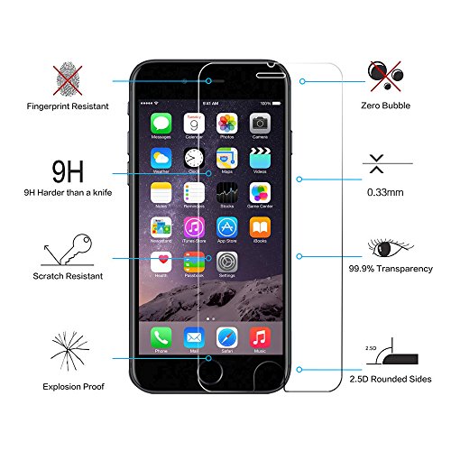 Why CNXUS:If you only accept the best, then choose CNXUS! CNXUS aim at product quality. Excellent Quality - Superior protection for your phone's screen without affecting the touch screen's display or sensitivity. As you know, a broken iPhone 6 Plus /6S Plus screen is going to cost about $150 to replace! CNXUS maximize the protection of your phone screen to reduce your loss. We aim to do it best.9H Hardness for Maximum Protection 9H Hardness makes it difficult to scratch, even with a knife, keys, or other sharp objects. Three times stronger than regular PET plastic film screen protectors.99% TrensparencyLight Penetration Ratio 99% (Comparison: Glasses 92%, General protective film 80%).Easy InstallationThe entire surface of the protector is transparent and the back side is covered with a strong silicon adhesive for easy installation.Sensitive TouchingUltra thin (0.33mm) thickness and smooth surface protect your phone's screen without affecting your screens quality image or touch sensitivity.Waterproof and Oil-Proof Oleophobic Coating: The protector has an oleophobic coating that prevents water and other contaminants plus makes the film easy to clean. Extends the life of your phone's LCD screen.Anti-shatter FilmIf broken, the protector breaks into small pieces that are not sharp, making it safer than other glass products.No ResidueLeaves no residue when removed.Special Note:Due to Apple iPhone 6 Plus / iPhone 6S Plus screen has curved edges that the tempered glass can't fully cover, only to fit the flat areas to avoid the screen protector from peeling off issue.Package Includes:3x Tempered Glass Screen Protector3x Micro-Fiber Cleaning Cloth3x Dust-absorberFeature