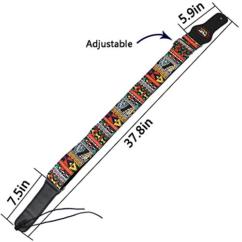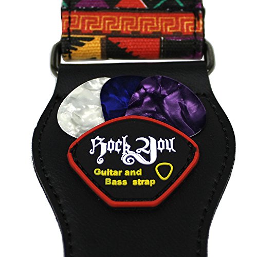 -. Feature : 1.PACKAGE:Pack with guitar strap and 3 finger guitar picks,3 thumb guitar picks,3 flat guitar picks. / 2.SIZE:2 inch in width,Fully adjustable length from 37.8" to 60"(96cm-153cm),to fit most sizes,comfortable to wear for both adult and children. / 3.PICK POCKET:With guitar pick pocket on one strap end for your convenience which make it easy to carry the small picks. / 4.LEATHER ENDS:Strap ends feature top-grade stitched leather for durability and a secure fit onto strap buttons or strap locks. / 5.CONSTRUCTED:Double Layers Thick,The strap material is soft to the touch and super sturdy that can hold up strong.