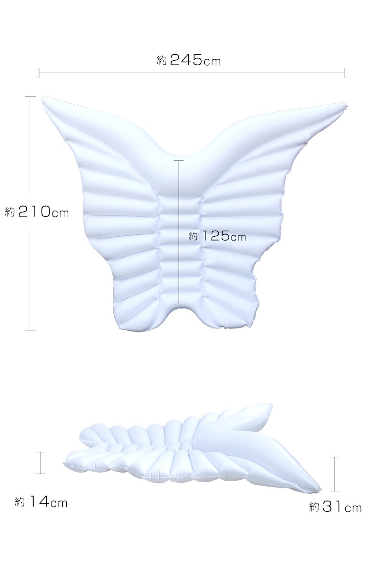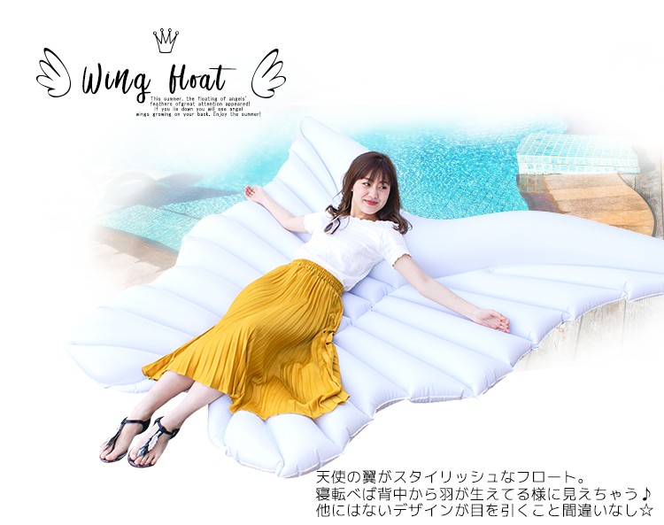天使の翼がスタイリッシュなフロート。 寝転べば背中から羽が生えてるように見えちゃう♪ 他にはないデザインは目を引くこと間違いなし! |