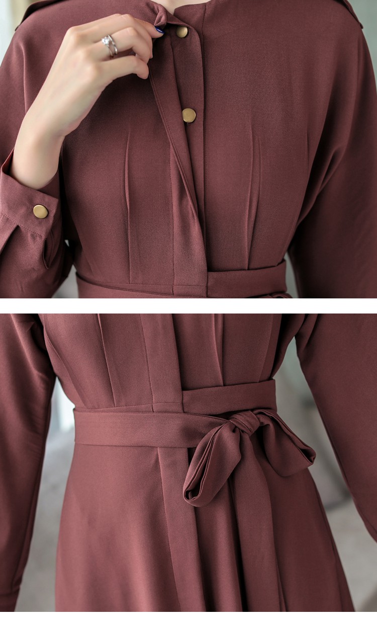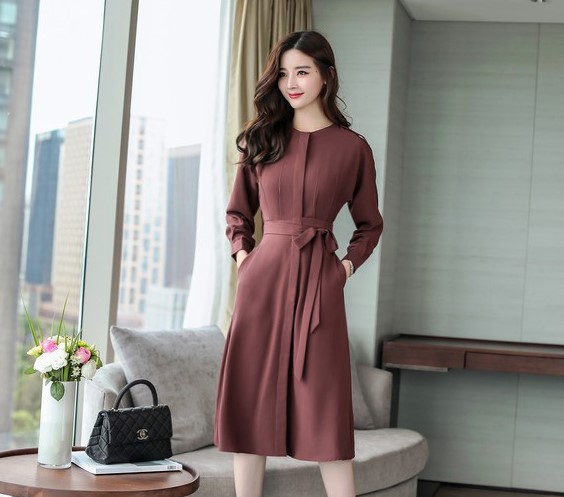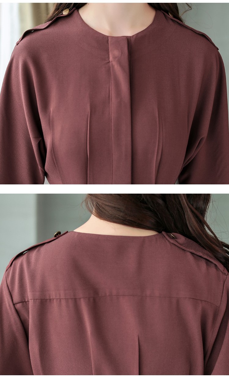 ノーカラーでスッキリした印象の9分袖ワンピースです。