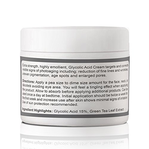 Aggressively smooths out fine lines and wrinkles without visible peeling. Targets and corrects visible signs of aging including dullness, sagging, age spots, enlarged pores, and rough skin. Evens out skin tone and texture to give an improved healthier looking complexion. Exfoliates dead skin cells and sun damaged skin with alpha hydroxy acid (aha). Enhanced with Green Tea Extract that actively regenerates natural collagen growth and cell production for healthier, younger looking skin. We use the highest standard of ingredients. The 15% Glycolic Acid contained in this formulas is not buffered, making the formula very strong and effective guaranteed. You will feel a tingling sensation when applying. Please use VERY sparingly (pea size to dime size amount) for the entire face, neck, or decollete. Beauty Facial Extreme's products work, and they work extremely well. We stand behind our products 100% with a guarantee of significantly transforming your skin to achieve healthy and more vibrant skin. Order Now, 30 Day Money Back Guarantee. *****OUR RECOMMENDATION***** Most effective when combined with our Hyaluronic Acid Serum & Moisturizer UV Shield SPF 45.Feature