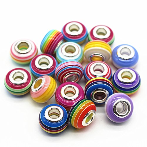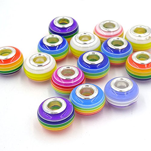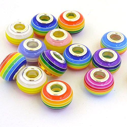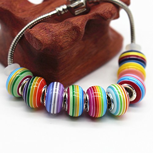 RUBYCA 50Pcs Mix Striped Murano Lampwork Glass Beads fit European Charm Bracelet for Jewelry Making