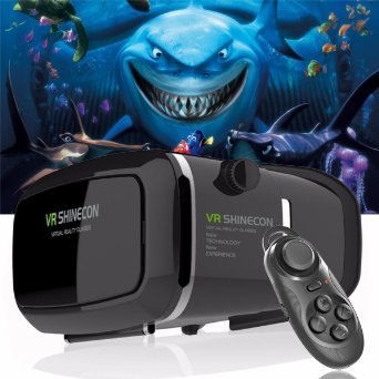 VR Headset Glasses Virtual Reality Mobile Phone 3D Movies for iPhone 6s/6 plus/6/5s/5c/5 Samsung Galaxy s5/s6/note4/note5 and Other 4.7"-6.0" Cellphones + Remote Controlle