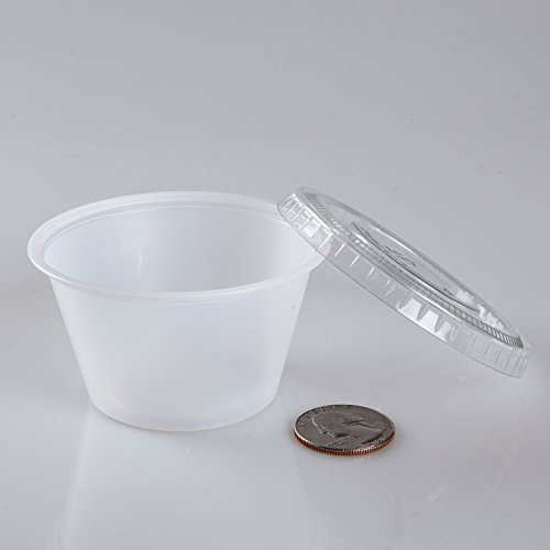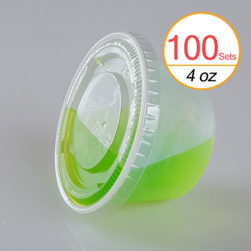 TashiBox 4 oz Plastic Cups / Disposable Portion Cups / Souffle Cups with Lids, 100 Sets