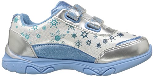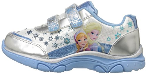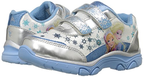 Whimsical sneaker in Frozen motif featuring lighted quarterpanel and metallic counter and toe cap